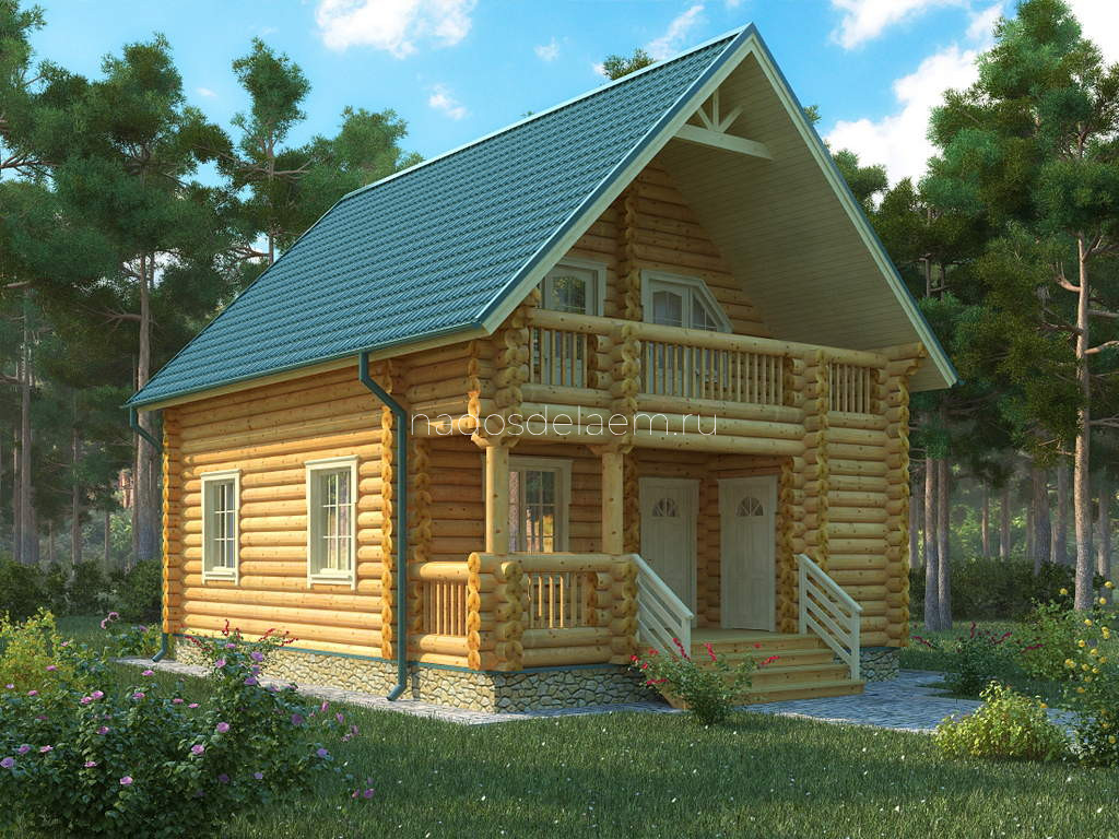 Проект №01 Бревенчатый дом 7х9 с открытым балконом