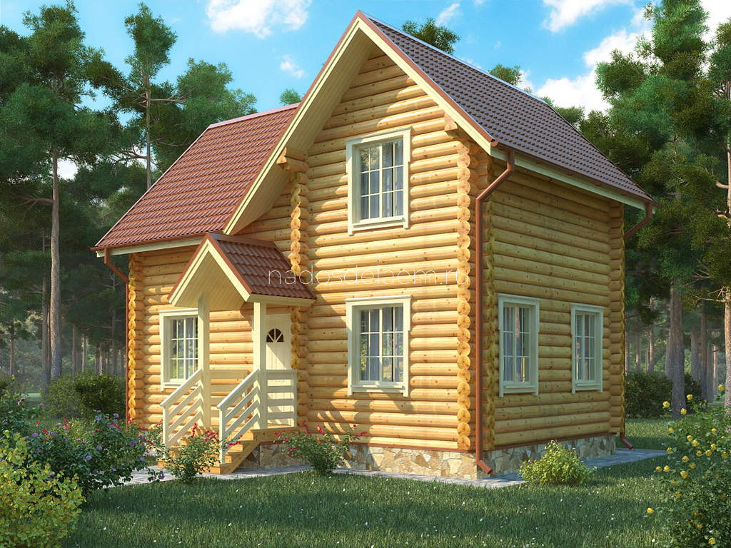 Проект №05 Дом из бревна 6х9 с рубленными фронтонами