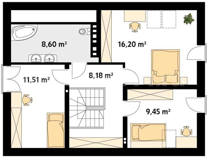 Спален: 3 (спальня 1 — 13,30 кв.м, спальня 2 — 13,30 кв.м, мастер-спальня — 14,00 кв.м)