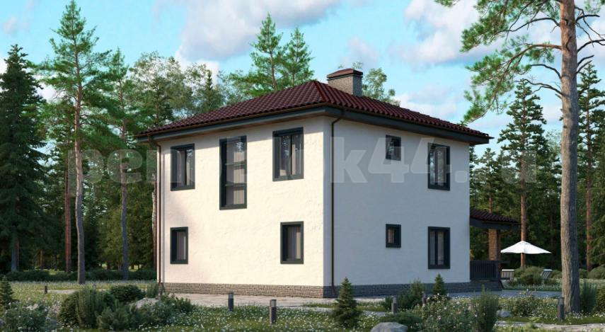 Этажность: 1 Размер: 11,80 х 12,30 м Общая площадь: 121,50 кв.м Терраса: да (площадь 18,90 кв.м) Крыльцо: да (площадь 4,60 кв.м) Эркер: нет Санузлов: 2 (санузел 4,00 кв.м и ванная 6,70 кв.м) Спален: 3 (спальня 1 — 13,30 кв.м, спальня 2 — 13,30 кв.м, мастер-спальня — 14,00 кв.м) Кровля: четырехскатная (вальмовая) Кукушка: нет Входов: 2 (главный вход через крыльцо и выход на террасу из зоны кухни-гостиной) Топочная: да (тех. помещение 6,00 кв.м) Гараж: нет Дополнительные экспликации помещений: Кухня-гостиная: 31,60 кв.м Прихожая: 5,10 кв.м Холл: 8,90 кв.м